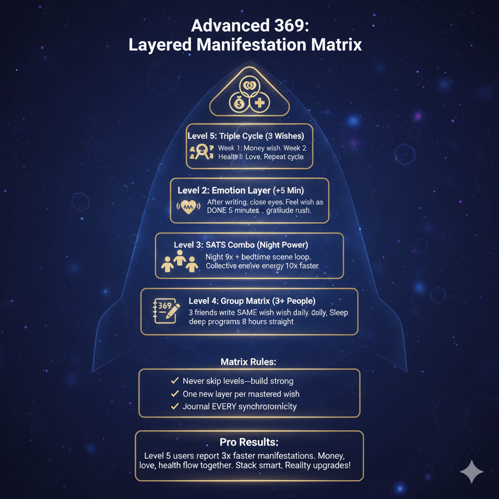 Once basic 369 works, stack levels for massive results. Build step-by-step.