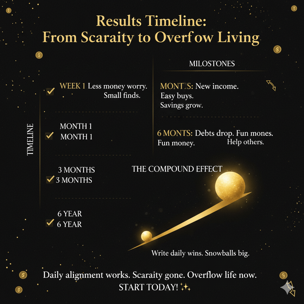 Write daily wins. Snowballs big. Most see change fast. Daily alignment works. Scarcity gone. Overflow life now. You ready? Start today! ✨