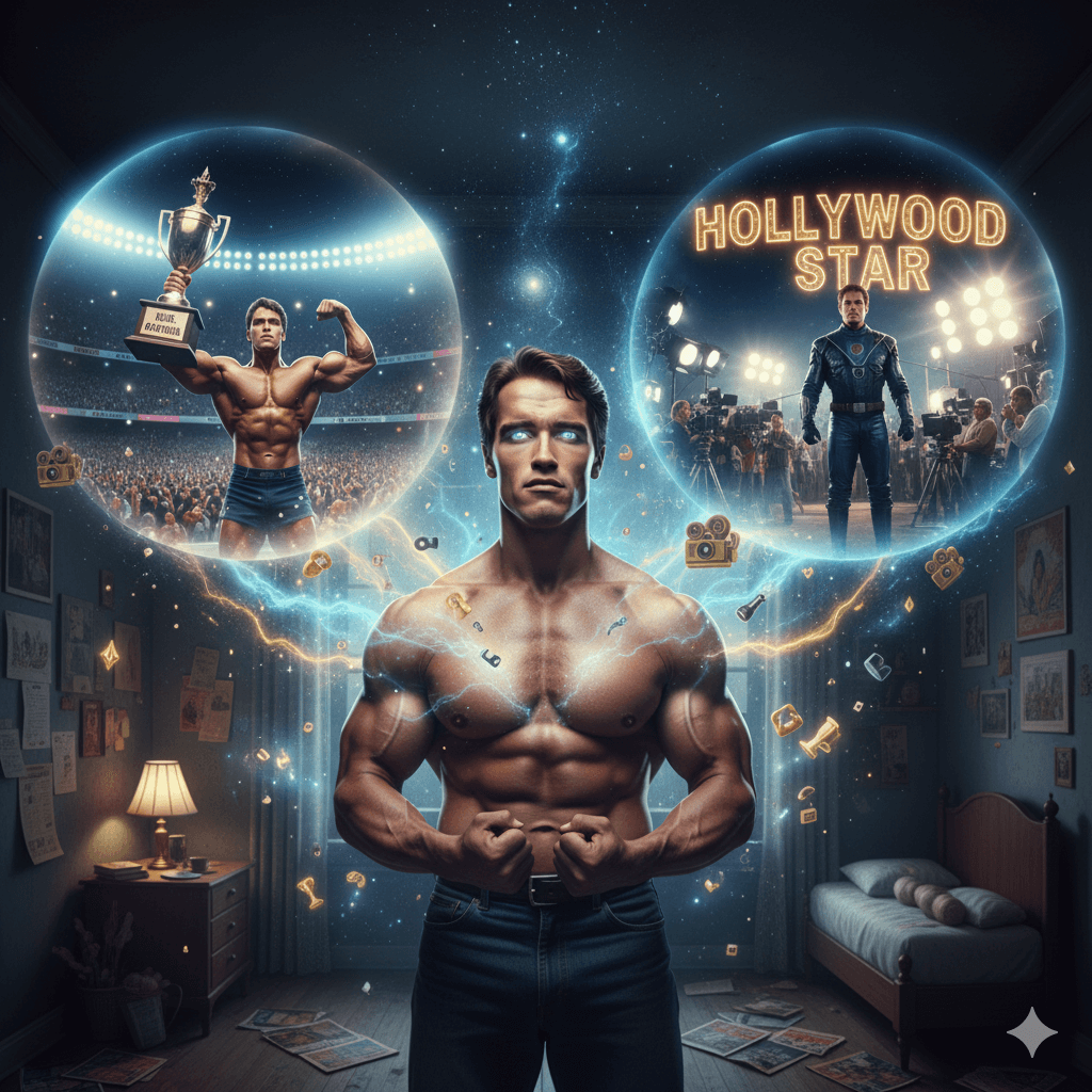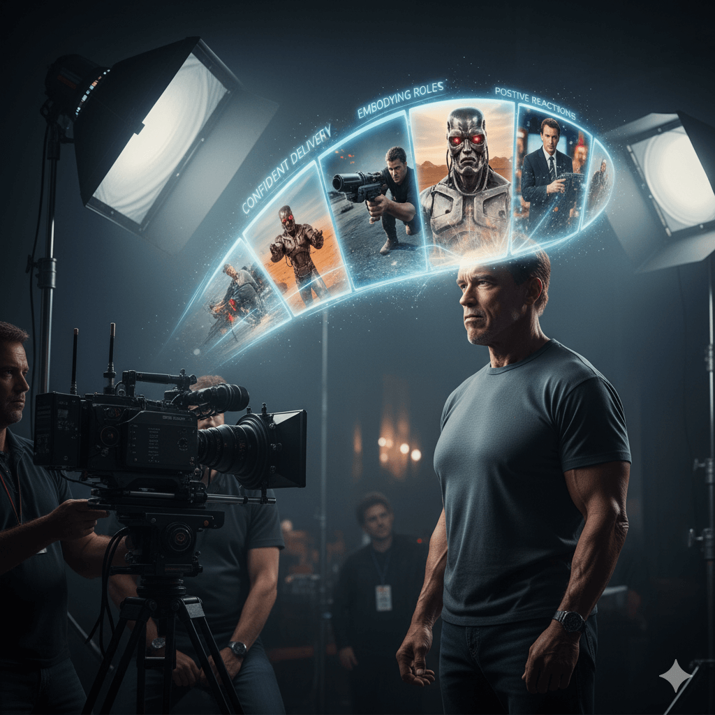 Arnold Schwarzenegger used visualization extensively in his acting career by mentally rehearsing his roles and performances before auditions and shoots. He imagined delivering lines confidently, embodying the character’s emotions, and receiving positive reactions. This practice built his self-assurance, helped reduce stage fright, and prepared him to perform at his best in front of the camera.