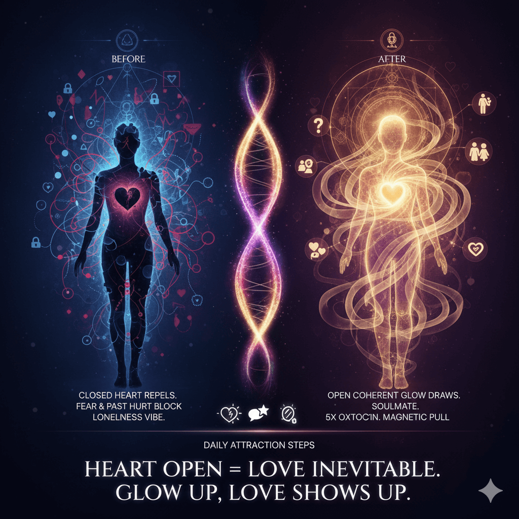 Single? Heart coherence turns you magnetic for true love. Closed heart repels; open coherent glow draws soul matches effortlessly.