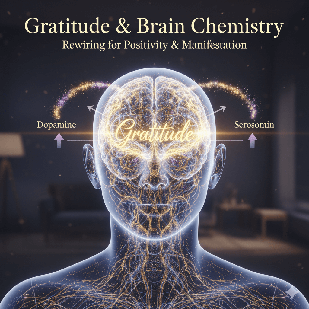 Gratitude positively impacts brain chemistry by boosting the release of dopamine and serotonin, the “feel-good” chemicals associated with happiness and well-being. This emotional alignment helps shift your mindset towards positivity. Through neuroplasticity, gratitude rewires the brain, strengthening neural pathways linked to positive emotions and diminishing those tied to negativity. This alignment also enhances positive energy and vibration, key elements for successful manifestation