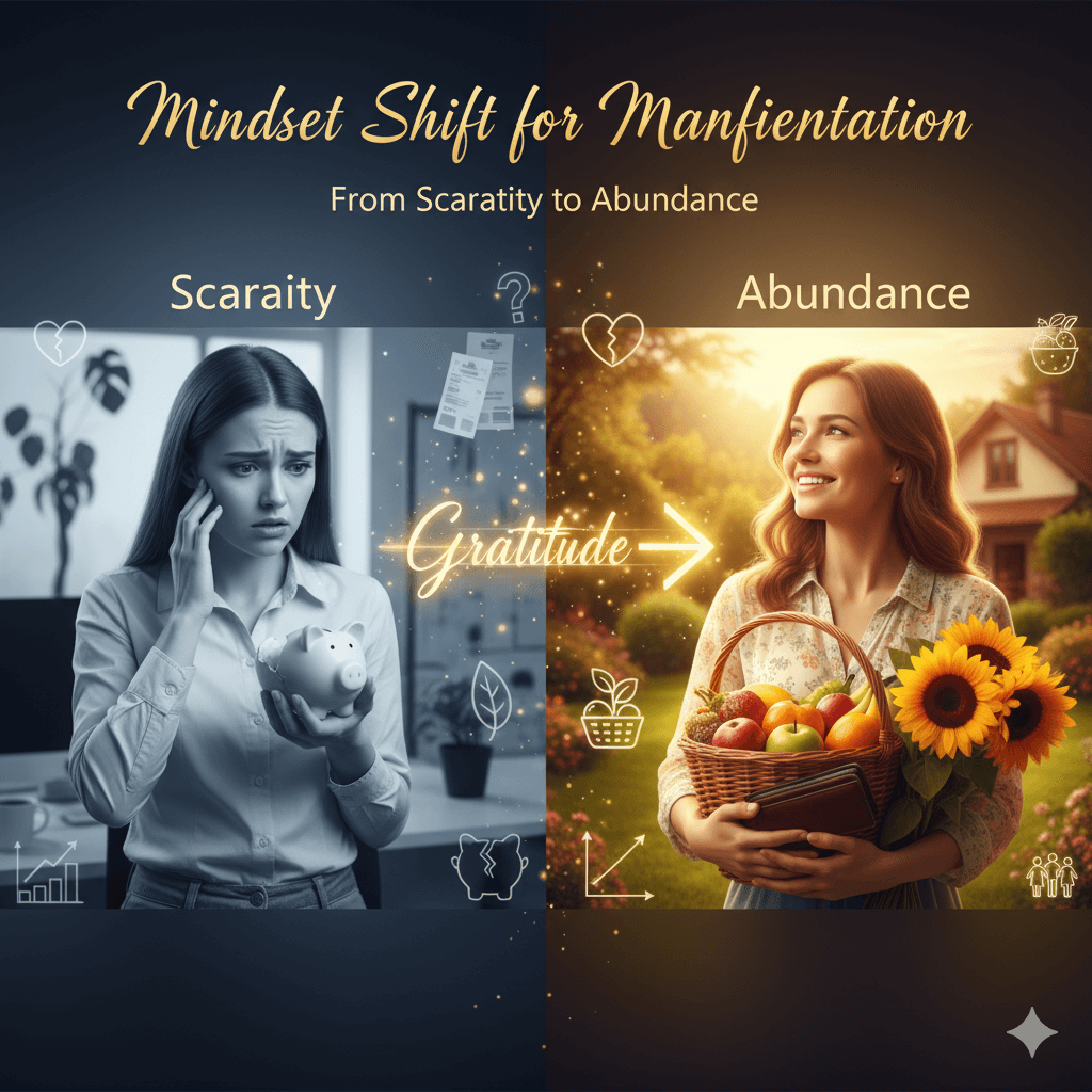 Gratitude shifts your mindset for manifestation by helping you move from feelings of lack to an abundant mindset. When you focus on what you already have and appreciate it, your perspective changes from scarcity to plenty. This positive outlook increases your focus on desired outcomes, attracting more of what you want and boosting your manifestation power.