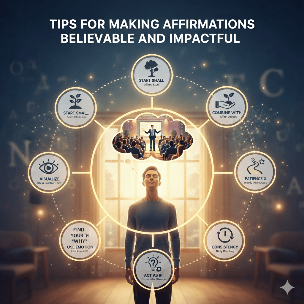 By following these tips, your affirmations will become believable anchors of positive change, helping you shift your mindset and move closer to your goals. Start simple, stay consistent, and watch how your belief transforms your life step by step.