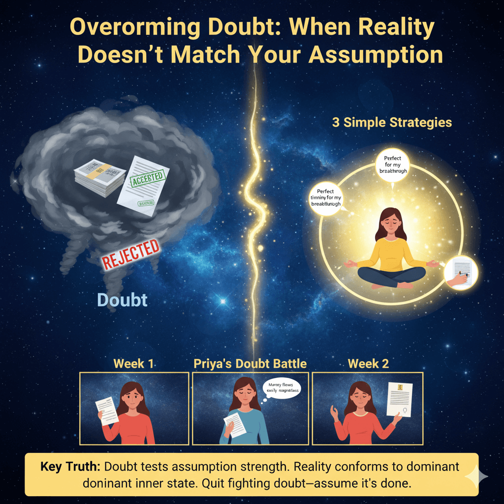 Key Truth: Doubt tests assumption strength. Persistent feeling overrides circumstances. Reality conforms to dominant inner state, not external noise.