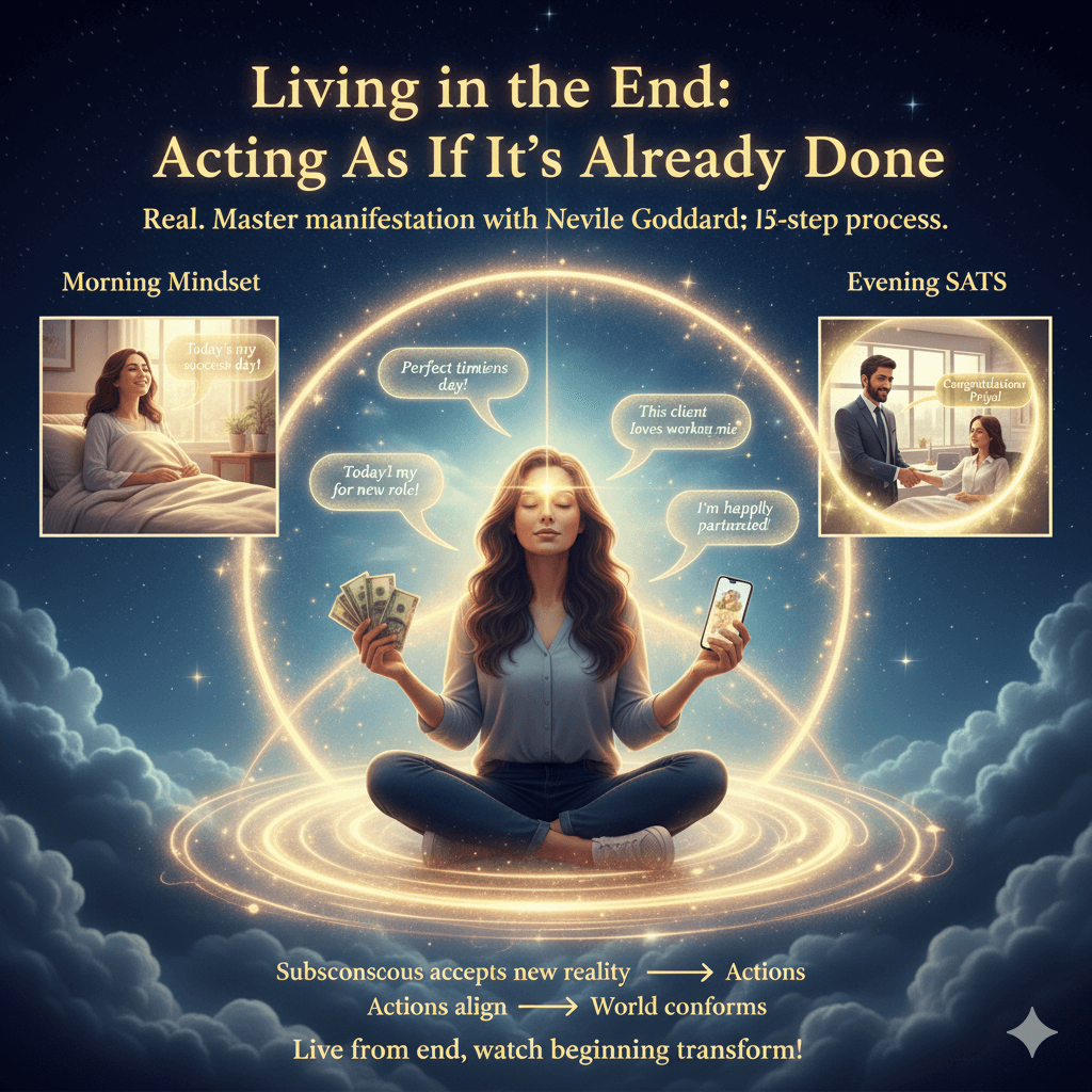 Result: Subconscious accepts new reality → Actions align → World conforms. Live from end, watch beginning transform!