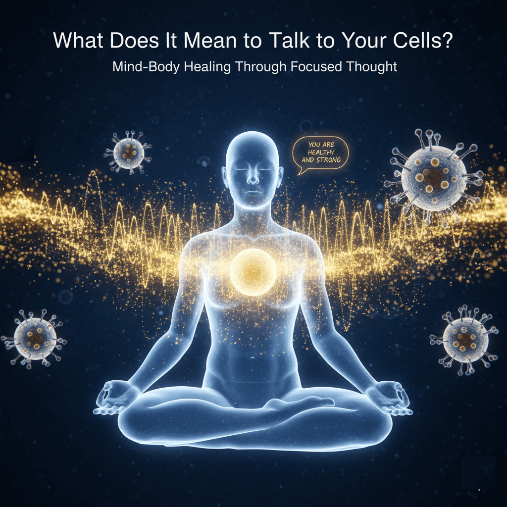 Talking to your cells means consciously sending positive messages and healing energy to your body at the cellular level. Cells communicate through chemical and electrical signals, responding to your emotions and thoughts. Stress and negative feelings release hormones that block healing, while calm and positive focus triggers your body’s natural repair mechanisms.