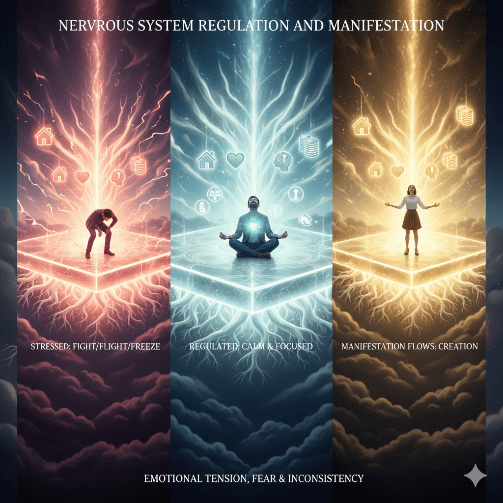 Simple regulation practices include deep breathing, gentle movement, grounding, and calm routines. When the body feels safe, the mind becomes receptive. Manifestation flows naturally when the nervous system is calm and balanced.