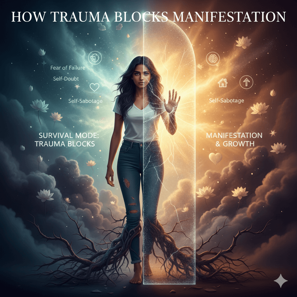 Trauma blocks manifestation by keeping the mind and body in survival mode. In this state, the brain is focused on avoiding danger rather than creating new outcomes. Even when a person consciously desires success, their subconscious may resist change because it feels unsafe.