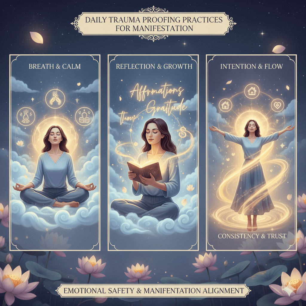When trauma proofing is practiced consistently, emotional balance improves and the mind becomes open to growth. This emotional stability is essential for manifestation because it allows belief, clarity, and action to work together.