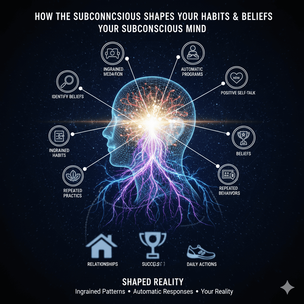 The subconscious mind is a powerful part of your brain that operates below your conscious awareness. It stores beliefs, memories, habits, and emotions that influence your thoughts and behaviors without you realizing it. While the conscious mind deals with deliberate thinking and decision-making, the subconscious controls automatic functions and responses. Understanding its role is key to learning how your subconscious shapes your reality—often driving habits and reactions that affect your success, relationships, and overall life experience. By tapping into and influencing this hidden part of your mind, you can create positive and lasting change.