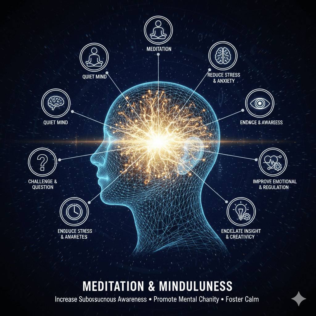 Meditation and mindfulness play a crucial role in increasing subconscious awareness by calming the conscious mind and allowing deeper mental processes to surface. Here’s how they help: