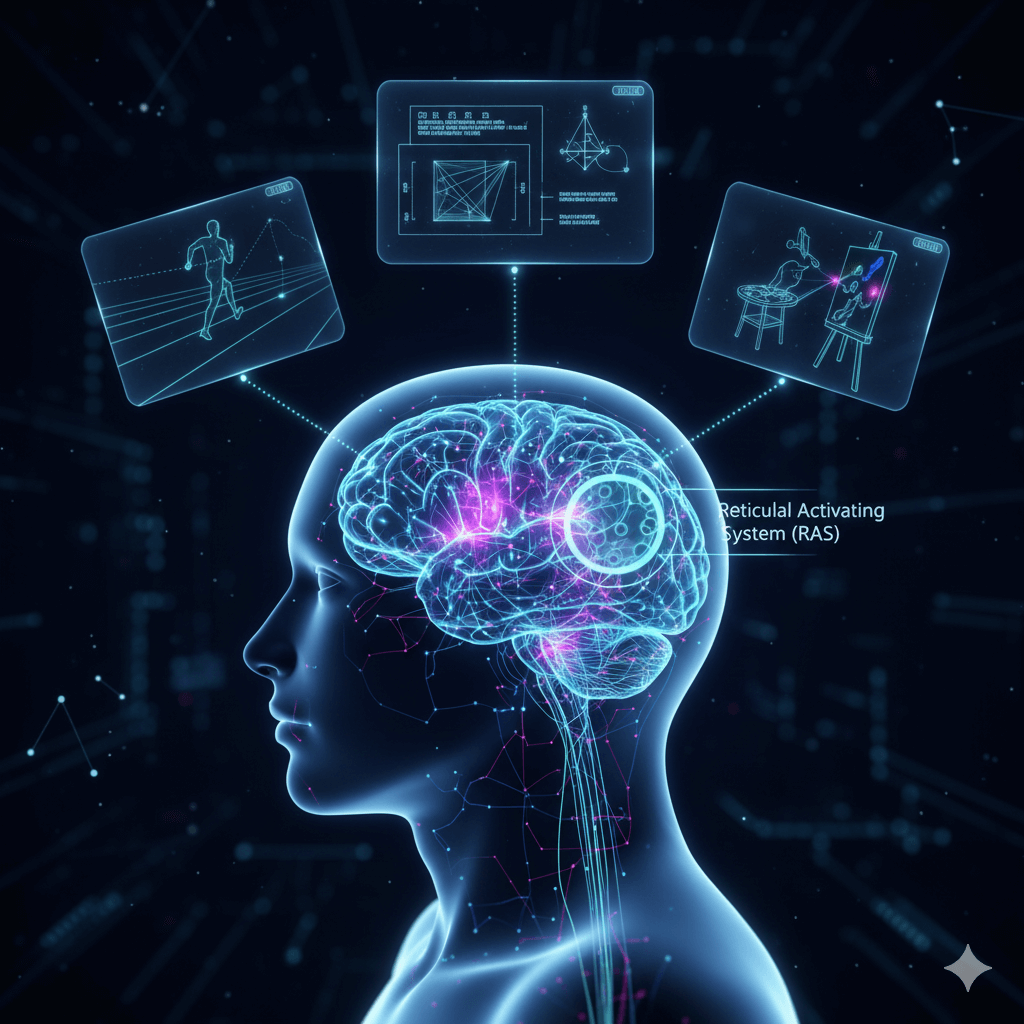 Visualization activates brain regions involved in perception, attention, and motor planning, effectively mimicking real experiences in the mind. This mental rehearsal forms new neural pathways, enhancing learning and performance. It also influences the brain’s Reticular Activating System, which filters sensory information to focus attention on goal-relevant stimuli, helping reprogram the subconscious toward success. Visualization thus rewires the brain to align thoughts and actions with desired outcomes.