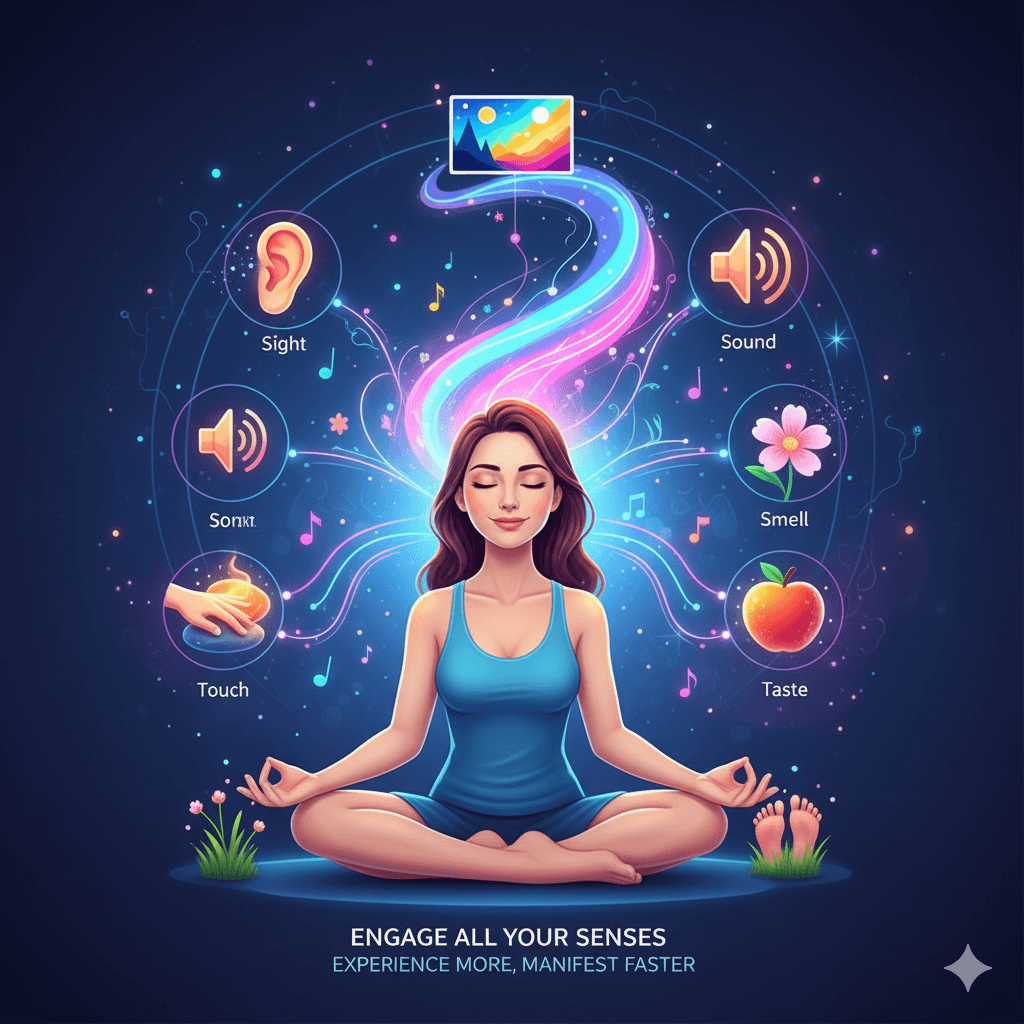 To enhance visualization, involve all your senses: see vivid images, hear sounds, smell scents, feel textures, and even taste if relevant. This multi-sensory approach creates a rich, immersive experience that makes your visualizations more convincing to the brain. Engaging senses deeply strengthens the emotional connection and boosts manifestation power.