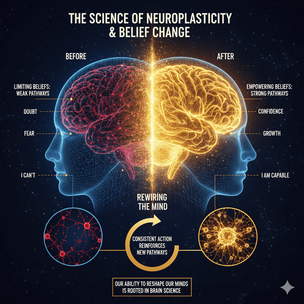 Neuroplasticity shows that belief change is a skill anyone can develop with effort and time.