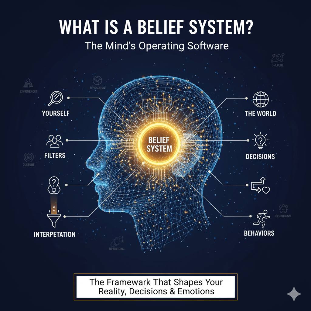 Belief systems are core principles and ideas that shape how we understand the world. They guide our thoughts, feelings, and actions by telling us what we accept as true. These beliefs develop from culture, family, and experiences, influencing how we behave and interpret life events. Belief systems form the foundation of our mindset and decision-making, affecting every part of our lives.