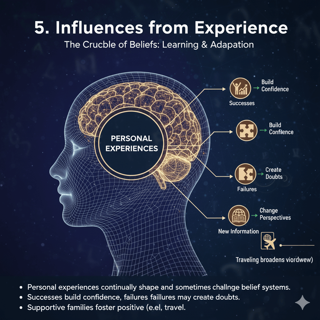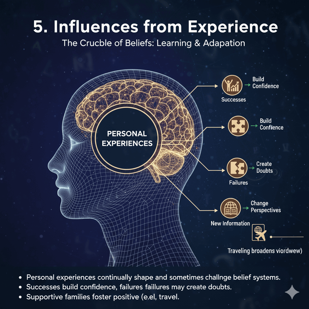 Personal experiences continually shape and sometimes challenge belief systems. Successes build confidence, failures may create doubts, and new information can change perspectives. For example, traveling to different countries often expands beliefs about other cultures and ideas, broadening one’s mental framework.